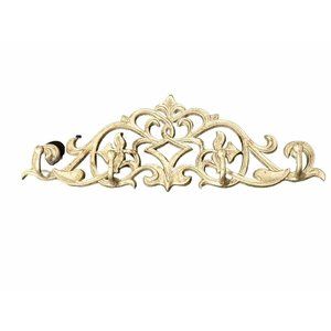 Vintage Wall Mounted Iron Scrollwork Four Hook Hat Coat Rack 16x6 In Some Rust