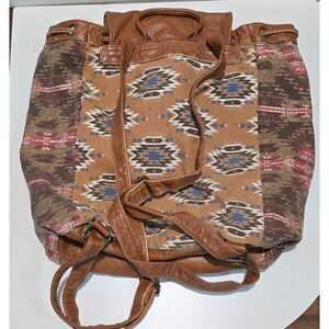 Vintage Wall Flower Womens Brown Faux Leather & Aztec Canvas Backpack W Buckles