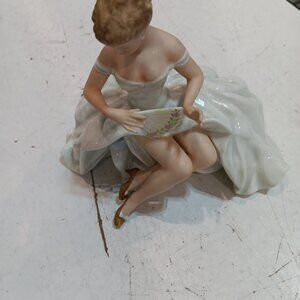 Vintage Wallendorf 1764 Porcelain Figurine Sitting Lady w/ Fan, Made in Germany.