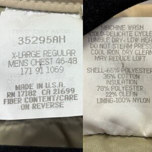 Mens XL 46-48, Thinsulate Lite Loft Insulation. Large Front pockets, inner pockets, inner drawstring waist. Excellent Like New condition.