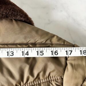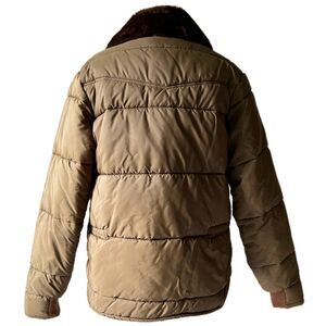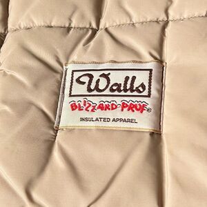 Vintage Walls Blizzard Pruf women's size SMALL insulated coat. Brown nylon with zipper and snap front. Brown faux fur collar. Two hand pockets and flap pockets with snap closure. Polyester insulation. Machine wash. Measurements in photos. Vintage coat is in very good condition with some snags and a small tear, shown in photos.