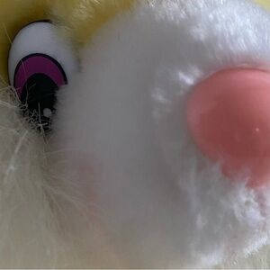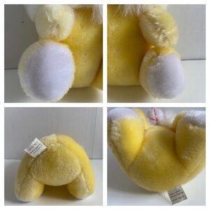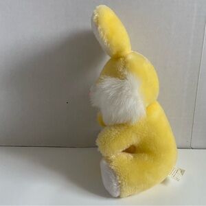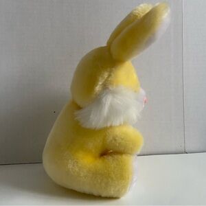 Vintage Walmart Bunny RabbitStuffed Animal Yellow Easter Plush Decoration. Rabbit is stiff and not soft where you can squeeze it. Pink thread on nose seems like it moved from center shown in close up picture. It appears to be glue in the picture.