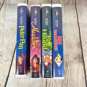 Walt Disney Classics Collection VHS Lot; includes Peter Pan, Aladdin, The Fox and the Hound, 101 Dalmatians.