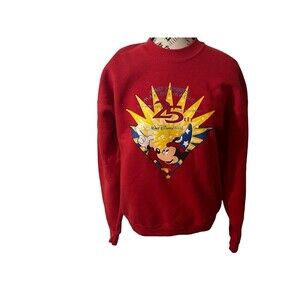 This vintage Walt Disney World cast member apparel is perfect for any fan of Mickey Mouse and the theme park. The red shirt features a large size and is suitable for adults of any gender. It has been designed by Mickey Inc and showcases the beloved character on the front. The shirt is part of the celebration of the park's 25th anniversary and is a great addition to any Disneyana collection. It was made in China and is an original piece, unmodified from its original design. Measurements Length 25 in Chest 22 in Sleeve length 32 in. See pictures, please. Ships quickly ULTRA RARE (TBD14)
