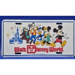 Vintage Walt Disney World Castle Mickey & Friends Metal License Plate 12x6"