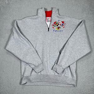 vintage disney sweatshirt epcot mickey mouse walt disney world 1/4 zip pullover embroidered men retro classic theme park resort collectible souvenir travel nostalgia rare logo cotton fleece 90s authentic large crewneck zippered jumper