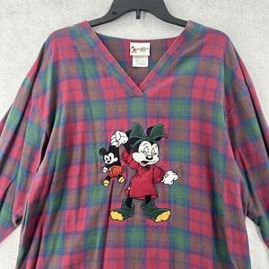 Vintage Walt Disney World Minnie Flannel Nightgown Women's SM Plaid Sleep Wear