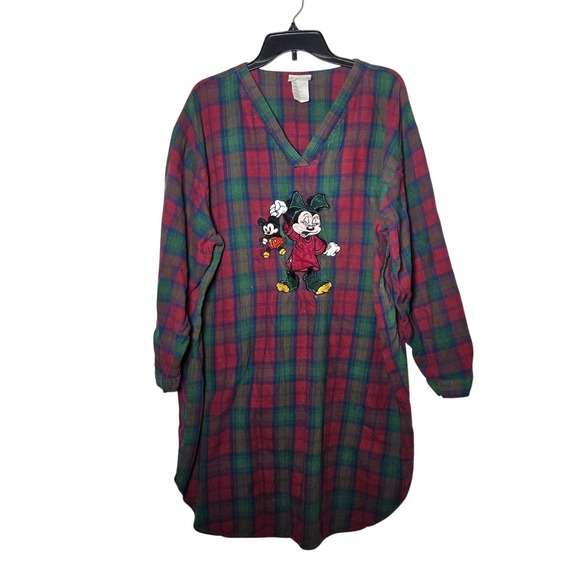 Vintage Walt Disney World Sleepwear Minnie Mouse Flannel Plaid Nightgown L/XL