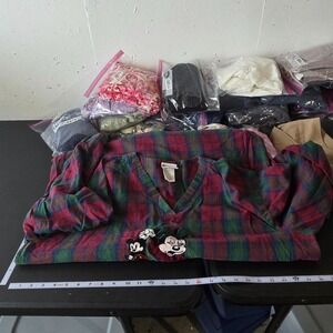 Nightgown gown shirt top tunic oversized plaid embroidered mickey night pjs pajamas character sleep large xlarge
