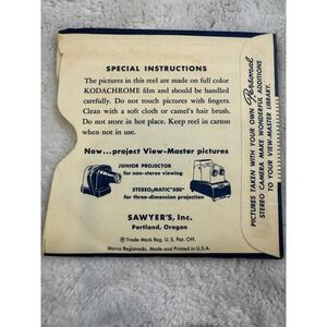 Relive the enchanting tale of Disney's "Bambi" with this captivating vintage View-Master set. This nostalgic collection includes three reels, each containing seven full-color, three-dimensional pictures that bring the beloved characters and memorable moments of the classic animated film to life. Journey through Bambi's world, from his first steps in the meadow to his adventures with Thumper and Flower, all rendered in stunning Kodachrome detail. This View-Master set is perfect for collectors, Disney enthusiasts, or anyone seeking a unique and immersive glimpse into a cherished childhood story. Ideal for a cozy family night, a nostalgic trip down memory lane, or as a unique display piece in a vintage collection.