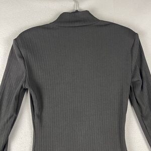 Vintage Walter Baker Ribbed Dress Womens Small Black Gold Button Mini Bodycon