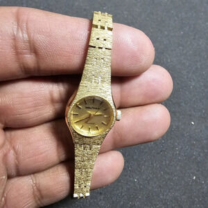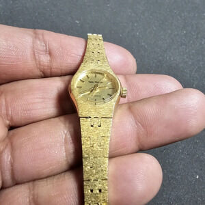 Vintage Waltham Ladies Quartz Cocktail Watch Gold Tone Working WL098 shows signs
