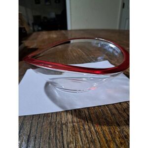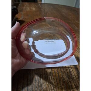 Good Vintage Condition POSSIBLY Walther Glass Germany (Advice from a Collector- but it is Marked Germany) Clear Bowl with Red Rim Art Glass Bowl