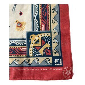 Vintage Wamcraft Southwestern Eagle Bandana Red Blue Beige Made in USA RN14193