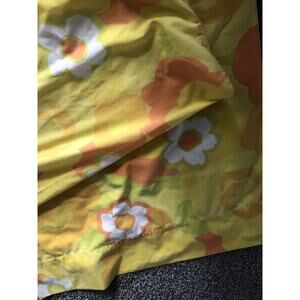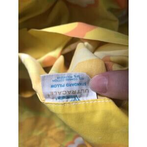 This vintage Wamsutta standard pillow case cutter pair features a soft and groovy 70s floral pattern in a bright yellow color. Made from a cotton blend material, these pillowcases are machine washable for easy care. The set includes a pair of pillowcases with a stitched closure, perfect for adding a touch of retro charm to any bedroom. Made in the United States, these original vintage pieces are a unique addition to any collectibles or linens & textiles collection, measuring 20 inches in width with a thread count of 200 or less.