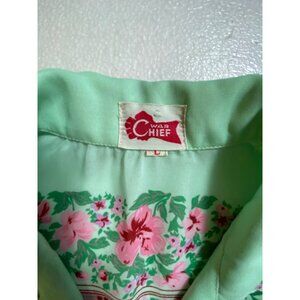 Vintage War Chief Floral Green Pink Long Sleeve Shirt top blouse Size Large Boho