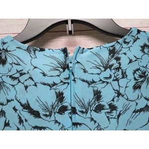 Vintage Warell Blue & Black Floral Dress with Belt Size 14 P Pleated Top