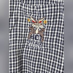 Excellent pre-owned condition. No rips, stains, or tears. Smoke free, pet friendly home. Warner Brothers, plaid, flannel, button down, road runner coyote, hot head, extra large, 100% cotton