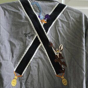 Vintage Warner Bros Looney Tunes Plaid Embroidered Suspenders Button Down Top