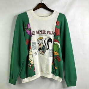 Vintage Warner Bros Split Dapper Golfer Sweatshirt Pepe Le Pew & Tiny Toons Sz L
