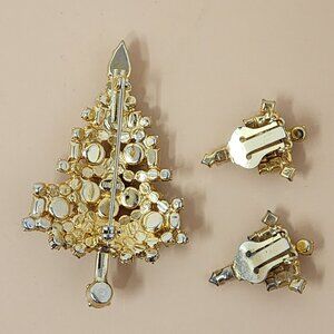 Vintage Warner Christmas Tree Rhinestone Brooch & Clip Earrings Set