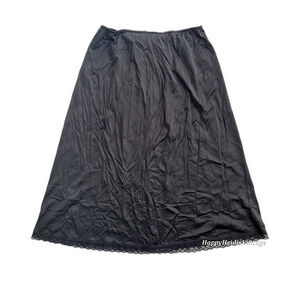 Vintage Warner's Aline Black Slip with Lace Trim Size Large Made in the USA Nylon Antron III
