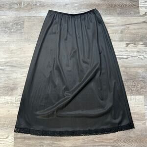 Vintage Warner’s Black Nylon Half Slip with Lace Hem | Size M Length Made in USA