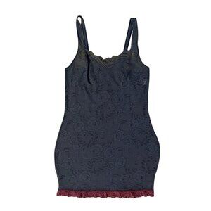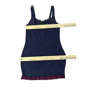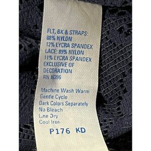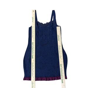 This Vintage Warner’s Lace Slip/Nightgown in size 36 (typically a bust size) is a classic and elegant piece of lingerie. Features include delicate navy blue lace fabric, adjustable straps, and a lovely purple lace hem. Made in the USA and tagged Style 55402, this piece offers timeless vintage appeal and comfort.
