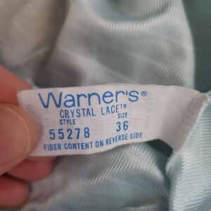 Vintage Warner's light blue pinstripe camisole with non-adjustable straps and lace detailing.