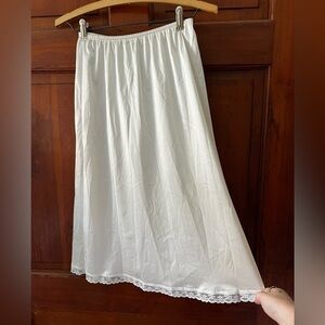 vintage lingerie, nylon slip skirt, bridal slip, sheer half slip, lace trim underskirt, retro lingerie, pinup style, 80s slip skirt, cottagecore, classic white slip, bridal shower lingerie
