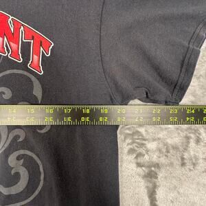 red skull graphic, band tee, vintage metal, distressed print, black oversized, rocker style, grunge aesthetic, concert tee, skull artwork, heavy metal