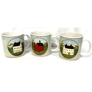 Add classic Americana charm to your kitchen with this set of 3 vintage Warren Kimble Brandon House Country Life coffee mugs by Sakura. Each mug features Warren Kimble’s signature folk art style with warm country scenes, perfect for collectors or everyday use.