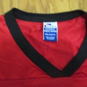 Show off your Buccaneers pride with this vintage Warrick Dunn #28 youth jersey by Champiion. Features the iconic red mesh design with black accents, 28 and Bucs logo on the sleeves, and “DUNN” on the back.