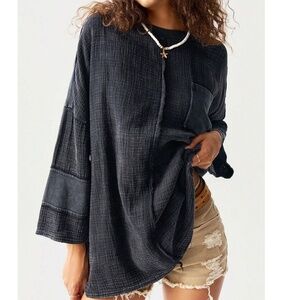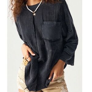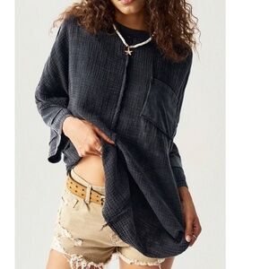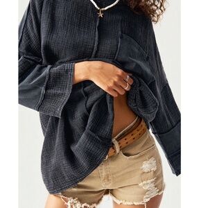 Vintage Wash Cotton 3/4 Sleeve Oversized Shirt