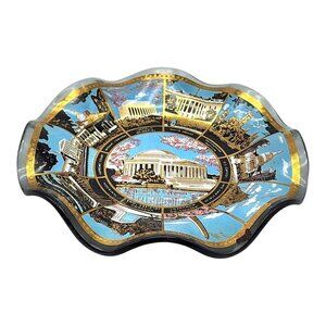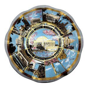 Vintage Washington DC Glass Souvenir Trinket Dish Painted Jefferson Memorial