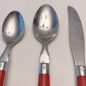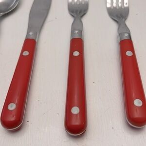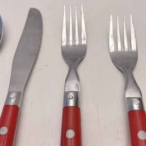 Here is a set of Vintage Washington Forge Mardi Gras 5 Piece Place Setting Red silverware in very good pre owned condition. I have several place settings in other listings if you need more then one you can bundle and save on shipping