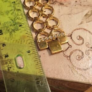 This vintage EJ quartz women’s watch captures the bold glamour and sparkle of Y2K-era fashion. Designed with a square case fully framed by a rhinestone bezel, it immediately stands out as a statement accessory. The dial features a softly pearlized face with a clean, minimalist layout, accented by elegant gold-tone hands that keep the look refined despite its dramatic shine. A matching gold-tone link bracelet completes the design, highlighted by decorative baguette-style accents that add texture and jewelry-like detail. Inside, a dependable Japan quartz movement provides accurate, low-maintenance timekeeping, while the stainless steel case back adds durability for regular wear. Made in China, this piece reflects the early 2000s trend of watches that blurred the line between timepiece and fashion jewelry. With its eye-catching sparkle, compact proportions, and luxurious aesthetic, this EJ watch is ideal for collectors of vintage rhinestone watches or anyone seeking a bold accessory.