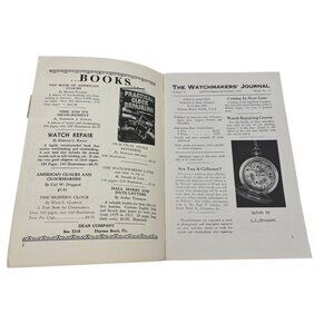 Two vintage editions of "Watchmakers' Journal" from 1959, featuring September-October and November-December issues. Ideal for horology enthusiasts or historical research, each 9" x 6" booklet includes lessons in watch repairing, unique content on vintage watches and tools, and advertisements of interest to collectors.