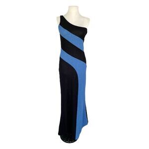 Vintage Water Signs Blue Black One Shoulder Sparkly Formal Maxi Dress Gown. Size Medium. Excellent used condition.
