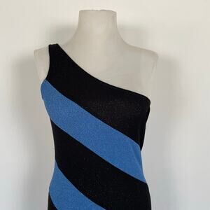 Vintage Water Signs Blue Black One Shoulder Sparkly Formal Maxi Dress Gown M
