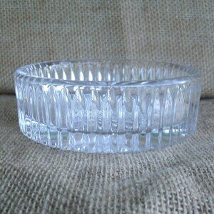 Vintage Waterford lead crystal wine bottle coaster. Watermarked. Round with faceted pattern. Heritage line. Made in Slovenia. 4 3/4 inches diameter, 1 1/2 inches high. Original tag on bottom. Good condition, no chips or cracks. Great for protecting your table/table cloth. Can also be used for candy or as a trinket dish. Great for anyone who likes lead crystal and/or Waterford.