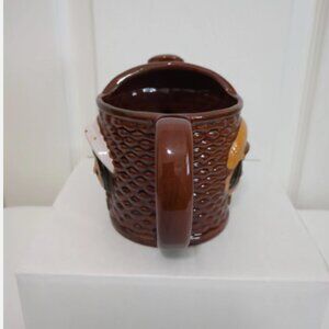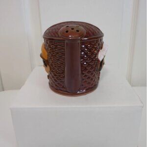 Adorable ceramic vintage watering can is a charming piece of decor for any plant lover. Hand-painted little girl and boy on the outside of the ceramic can. The ceramic watering can is 8" and 16" around. EUC
