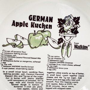 Vintage Watkins German Apple Kuchen Pie Plate Pan Recipe Oven Ware Kitchen Decor