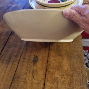 This item is a Watt Apple 13" "Spaghetti" Bowl (It doesn't say Spaghetti like the other one). It is marked with a 39. It is a slightly different shape than the other bowl I listed. It has a couple small chips at the base as pictured as well as crazing all over. A few medium staining on the inside. It has a couple of glaze pops on the outside. No other chips, cracks, or repairs. Please view pictures and feel free to ask questions. I am happy to bundle items and combine shipping. Thank you for visiting my closet.