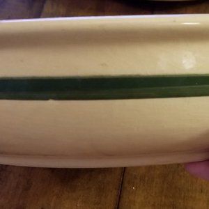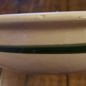 This item is a Watt Apple 13" Spaghetti Bowl. It is marked with a 39. It has a green band on the outside and 2 chips on the outer edge as pictured as well as crazing all over. A few slight stains on the inside. No other chips, cracks, or repairs. Please view pictures and feel free to ask questions. I am happy to bundle items and combine shipping. Thank you for visiting my closet.
