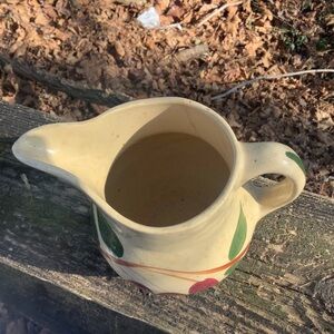 Decorative Vintage creamer, marked Watt 15. There is a line crack on the back as shown, has great color and displays very pretty.