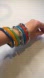 It Includes 2 sturdy gorgeous pewter bangles with matching colorful plastic bangles to wear together or rotate with outfits