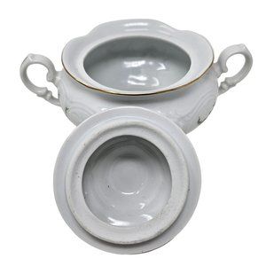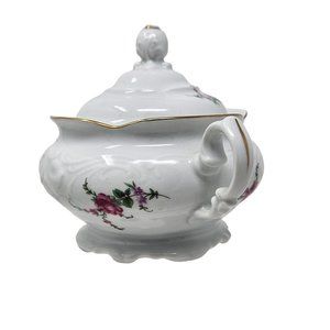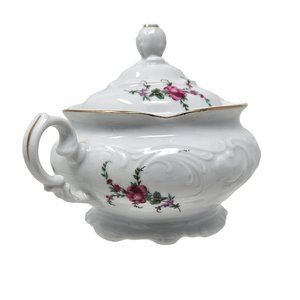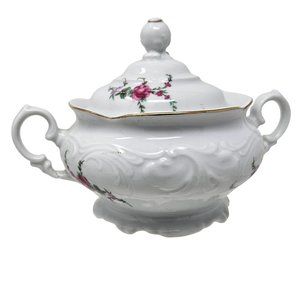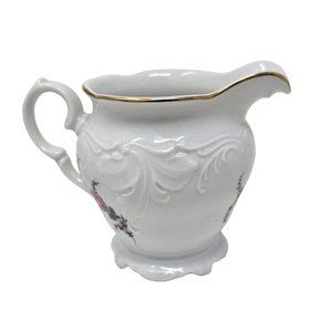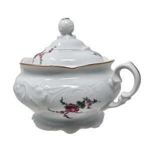 Vintage Wawel Royal Vienna Collection Sugar Bowl with Lid & Creamer White Floral