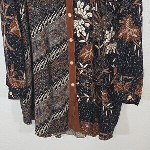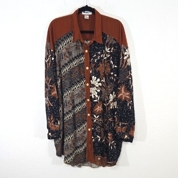 Vintage We Be Bop Brown/Black/Cream Beaded Floral Tribal Tunic/Dress, size 3X