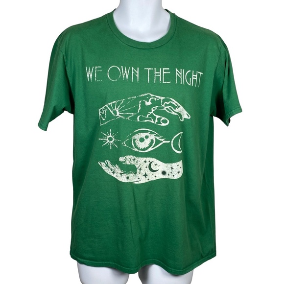 Vintage We Own The Night Graphic T Shirt Adult Size L Green Crewneck Cotton